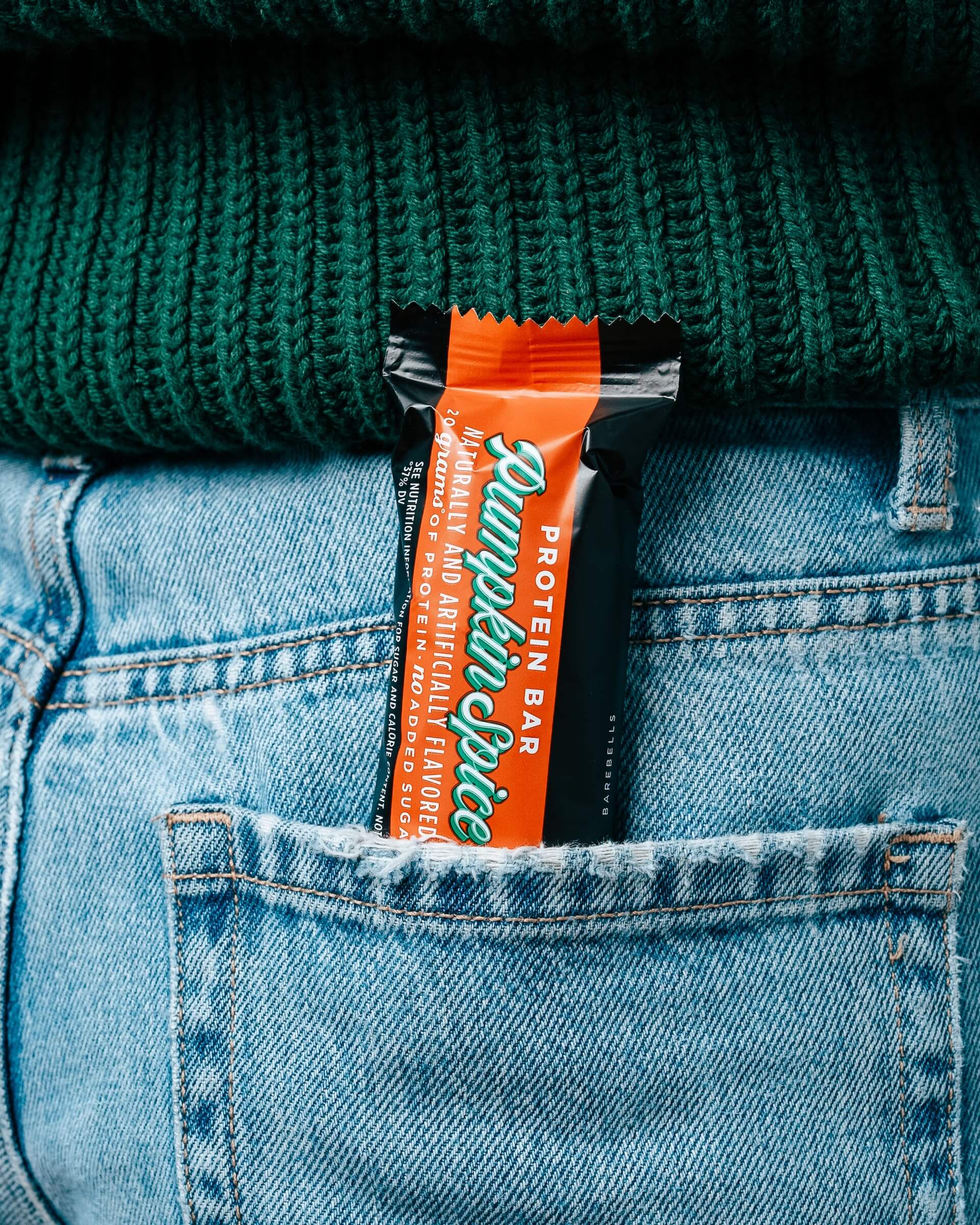 The Barebells Pumpkin Spice bar is the perfect combination of pumpkin, cream, and a smooth layer of warm vanilla with a hint of cinnamon. It is sprinkled with crisps and covered in velvety milk chocolate. Each bar has 20 grams of protein and no added sugar.